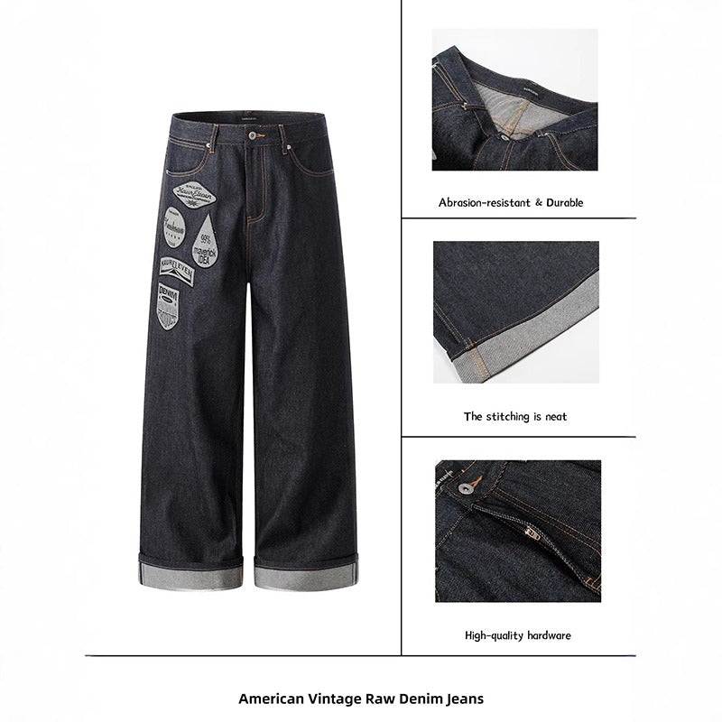 Hip Hop Letter Embroidery Baggy Wide Leg Jeans