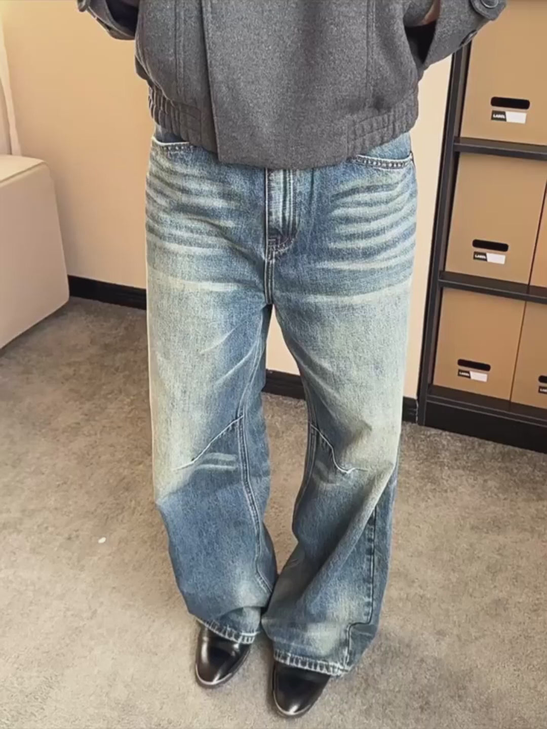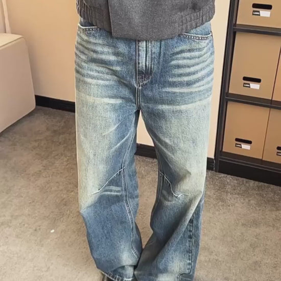 Retro Washed Blue Cat Whisker Loose Fit Jeans