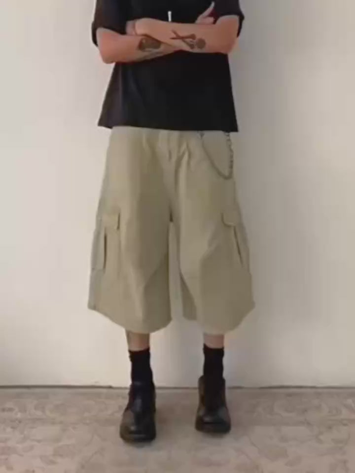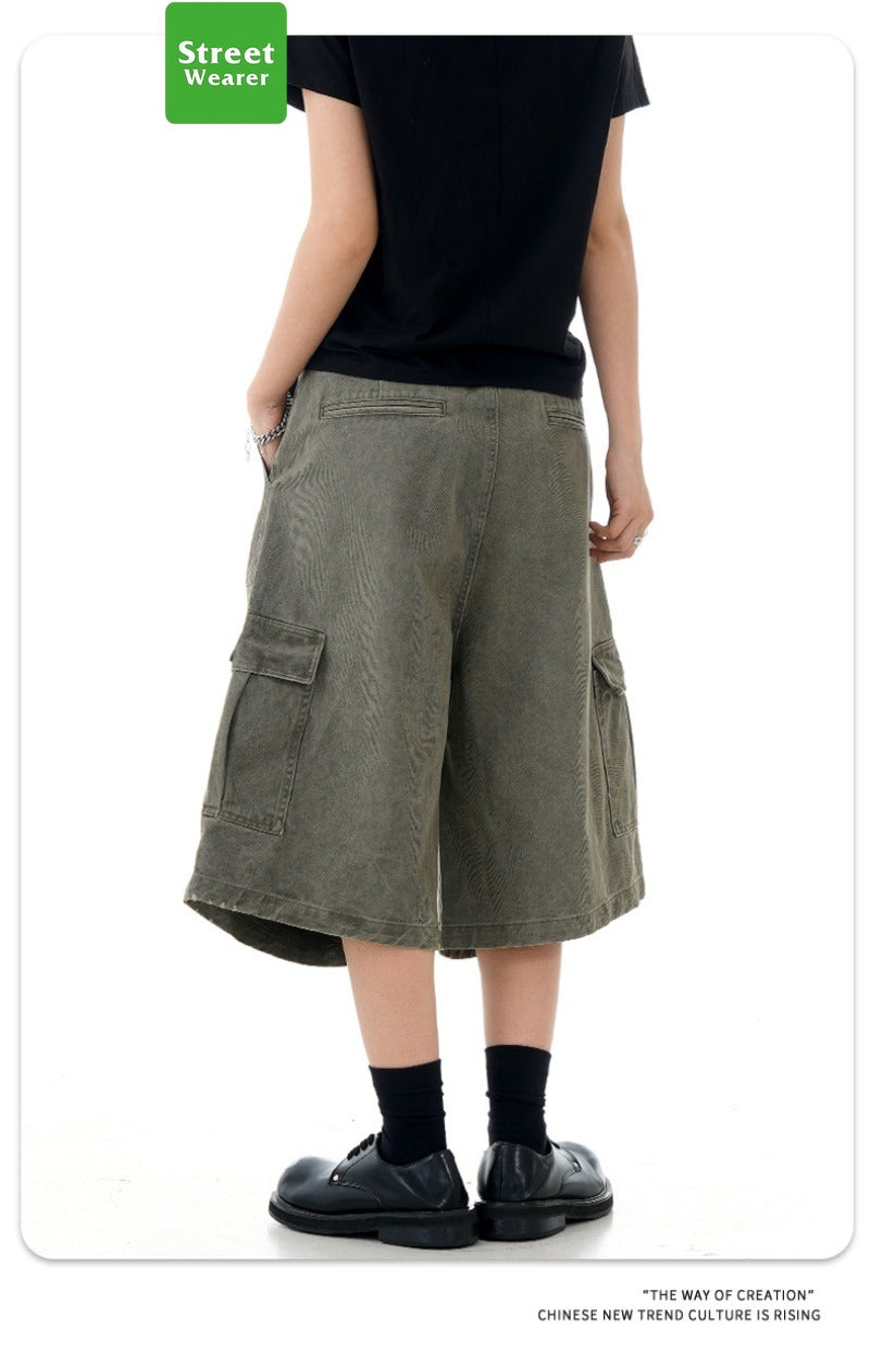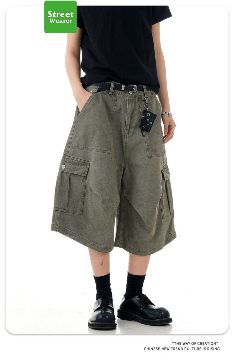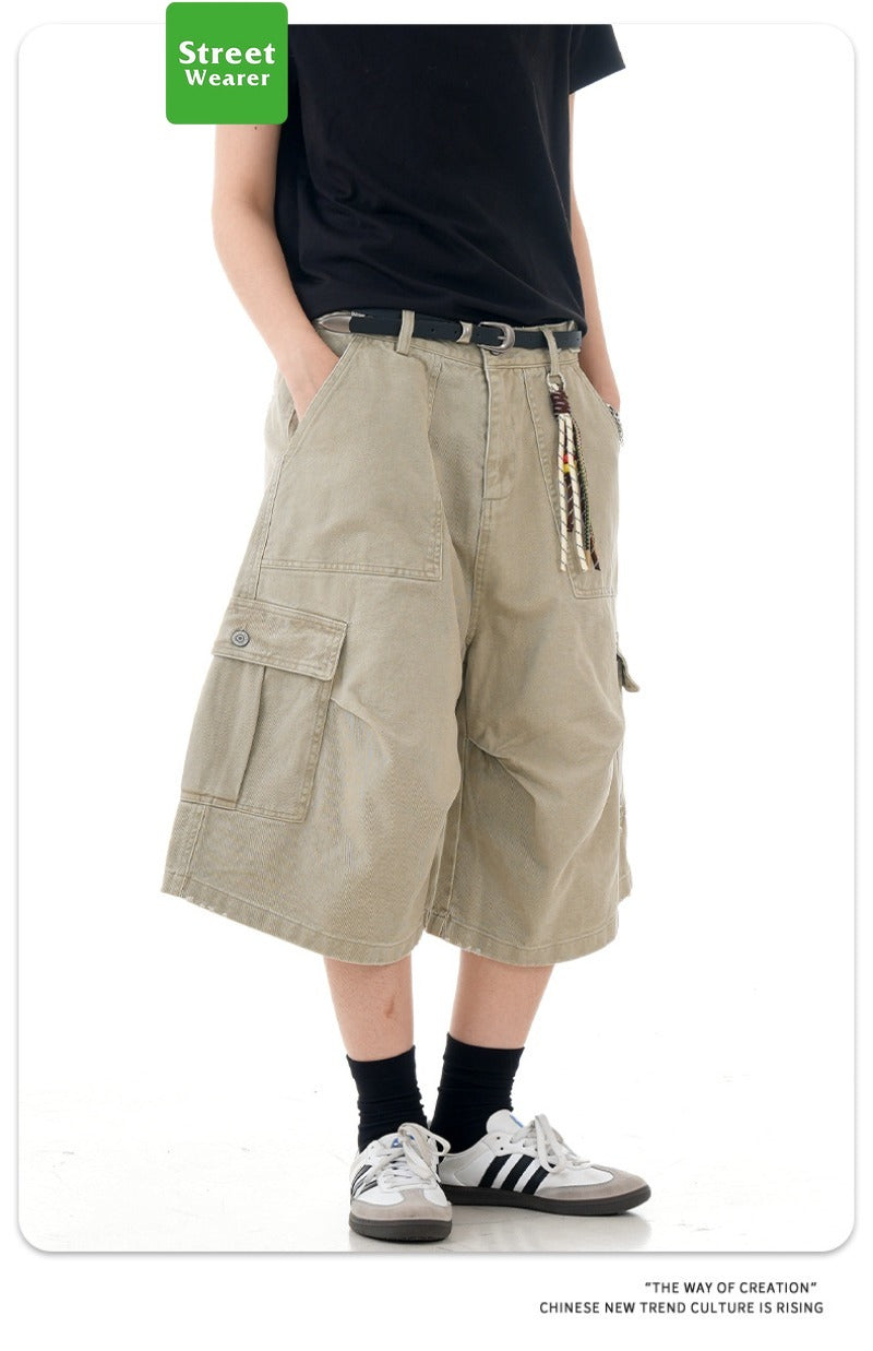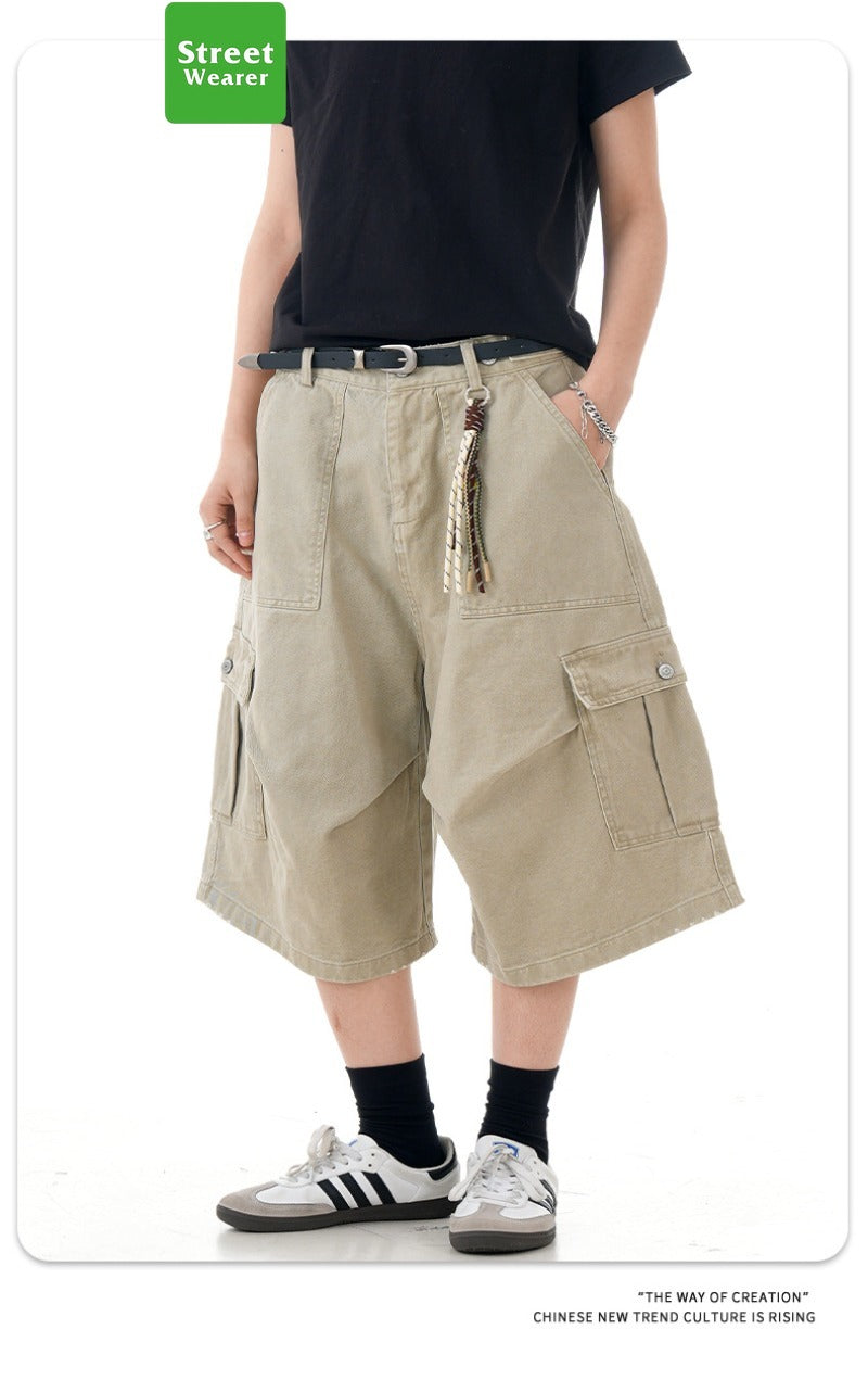 Retro Multi-Pocket Loose Straight Leg Wide Leg Work Shorts