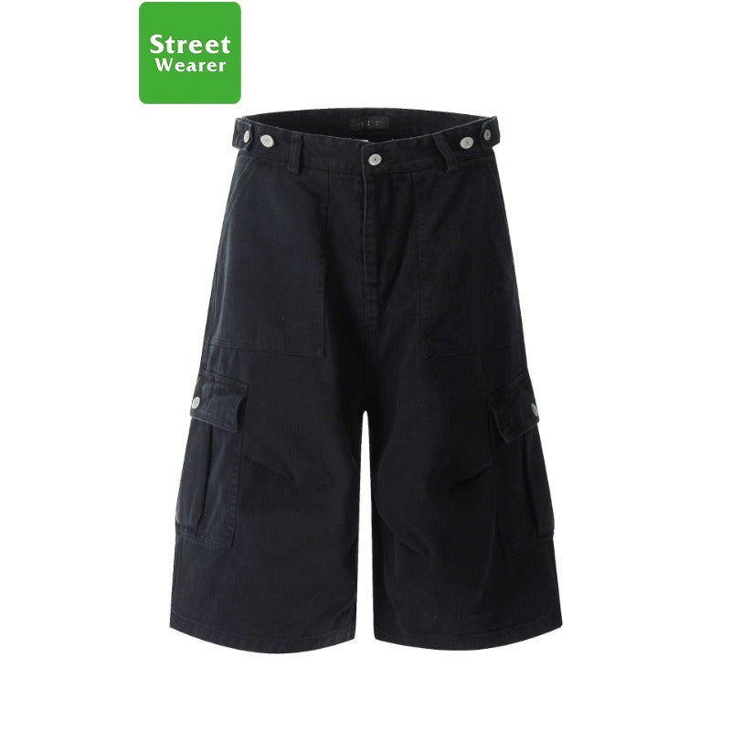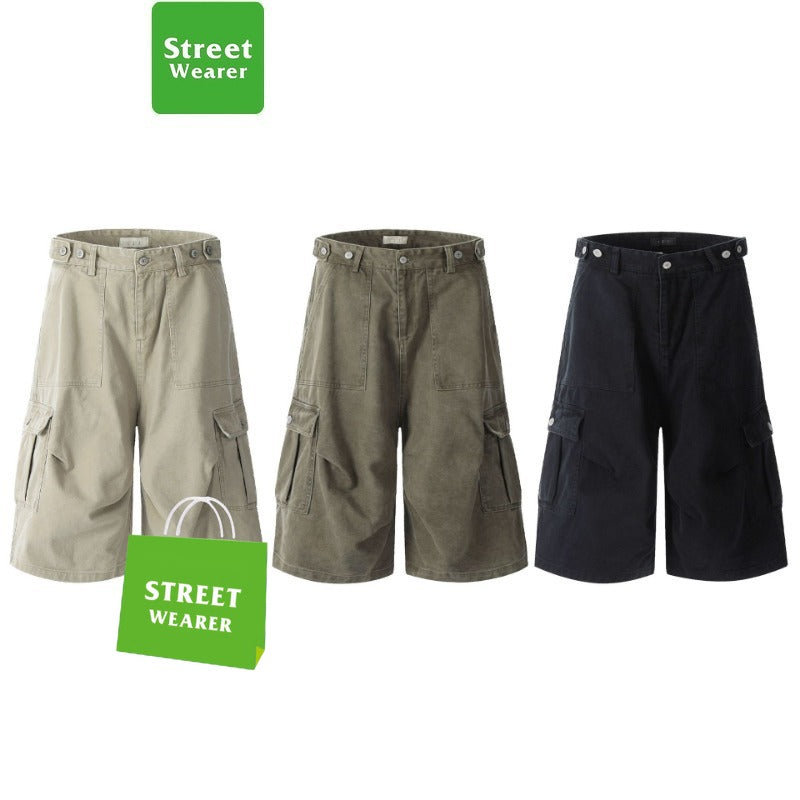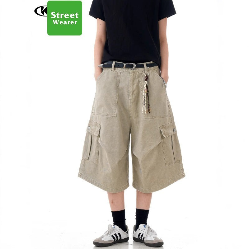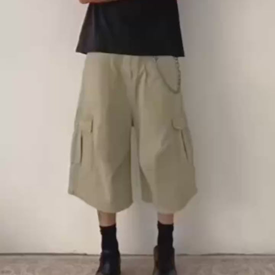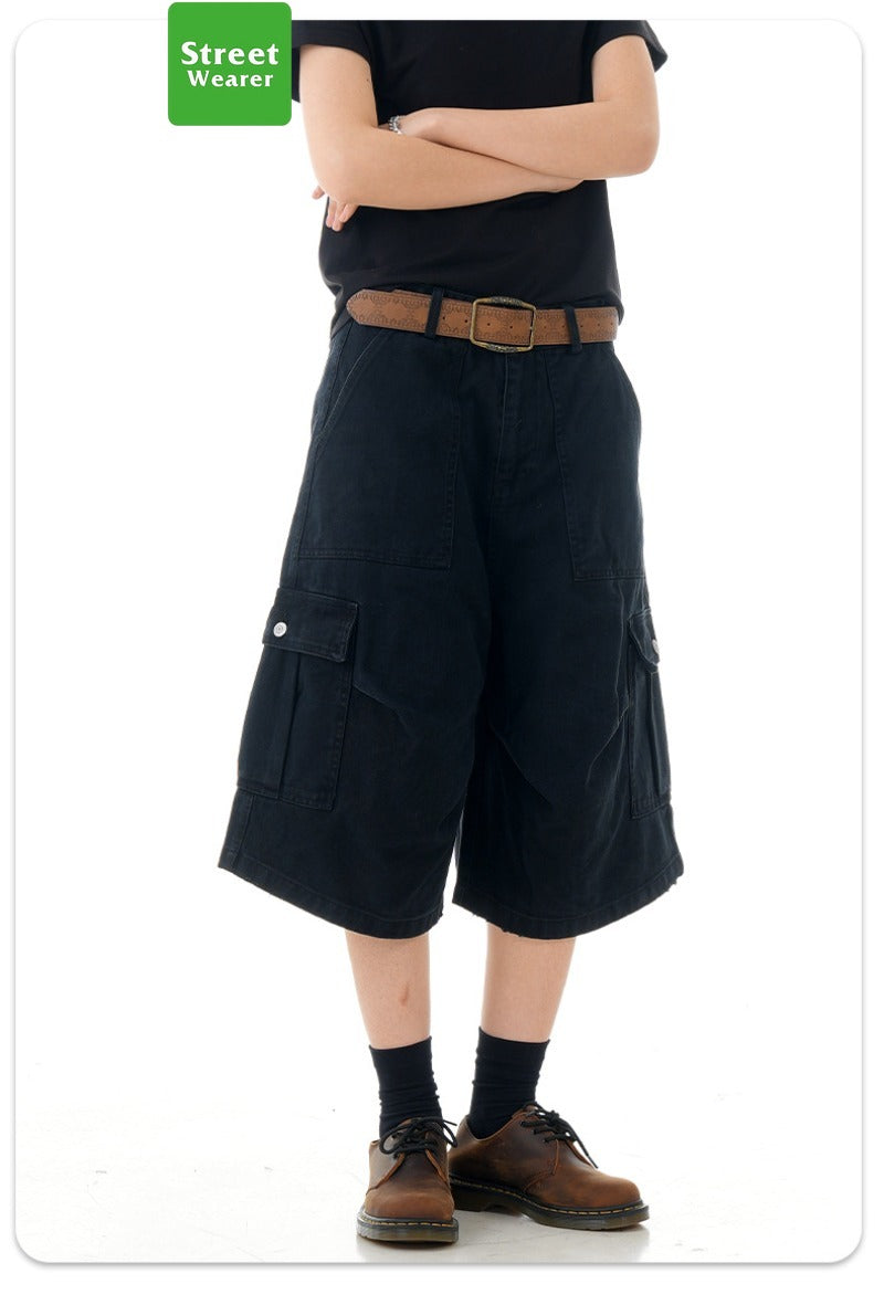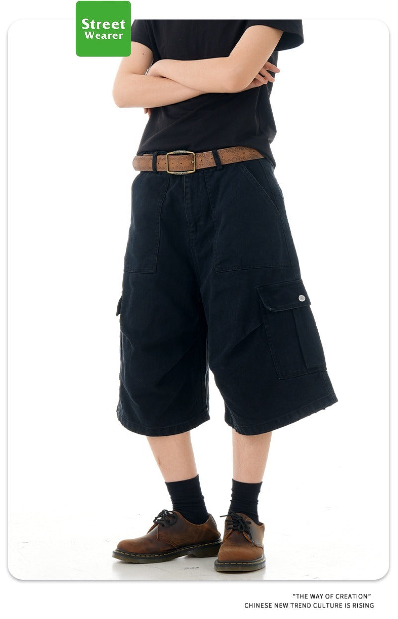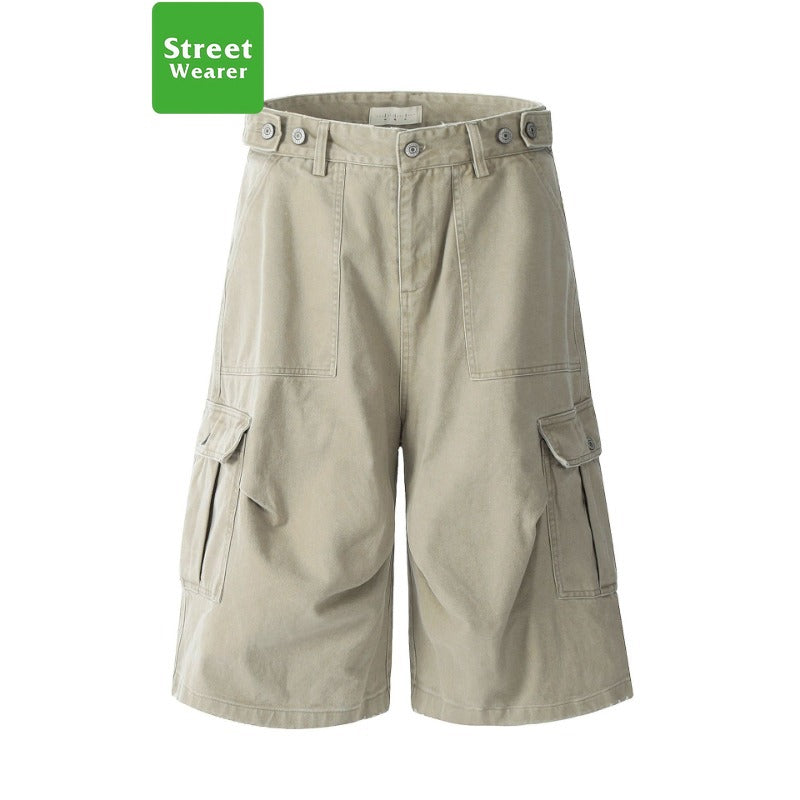 Retro Multi-Pocket Loose Straight Leg Wide Leg Work Shorts