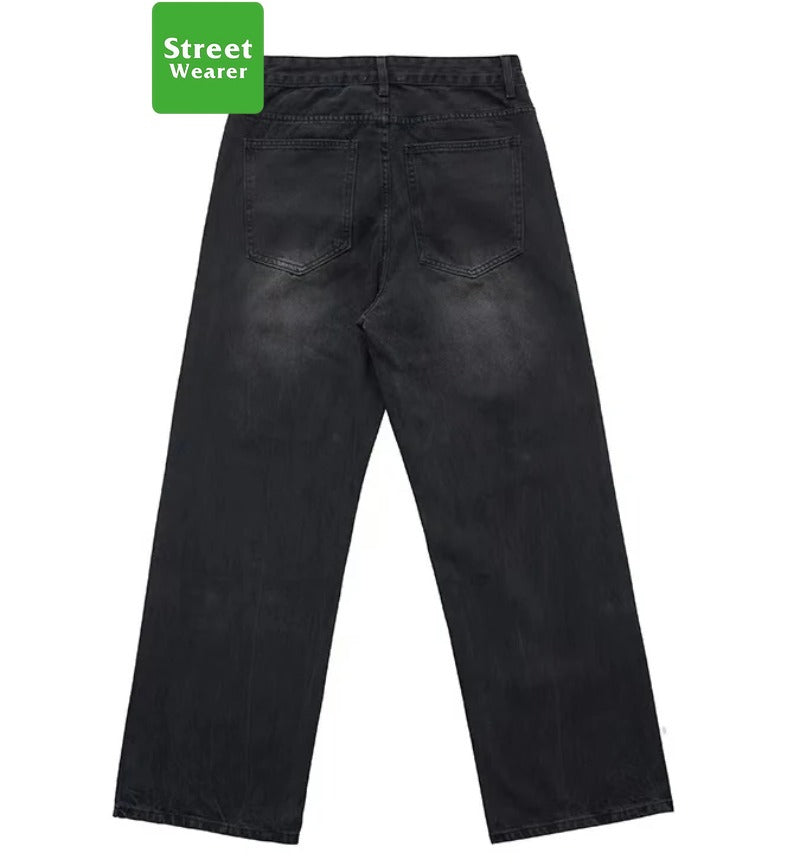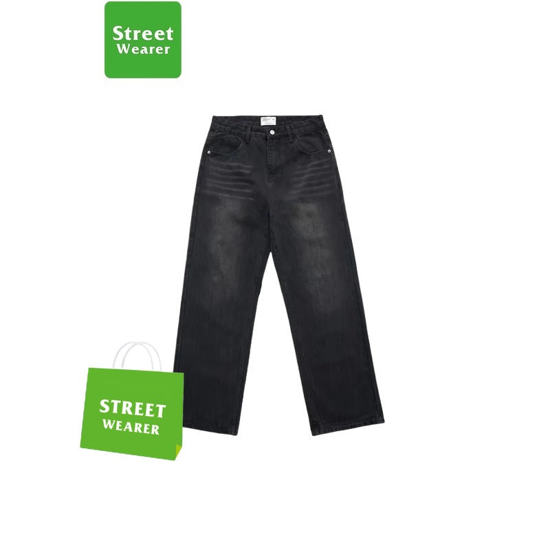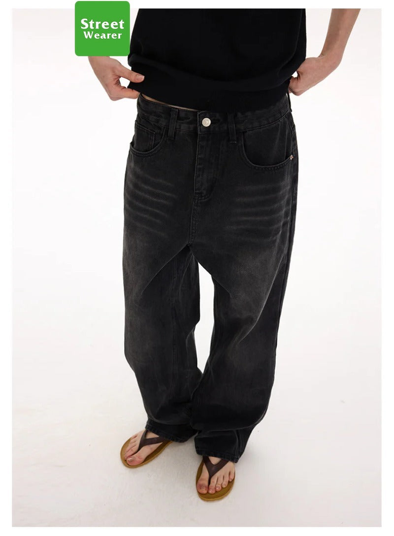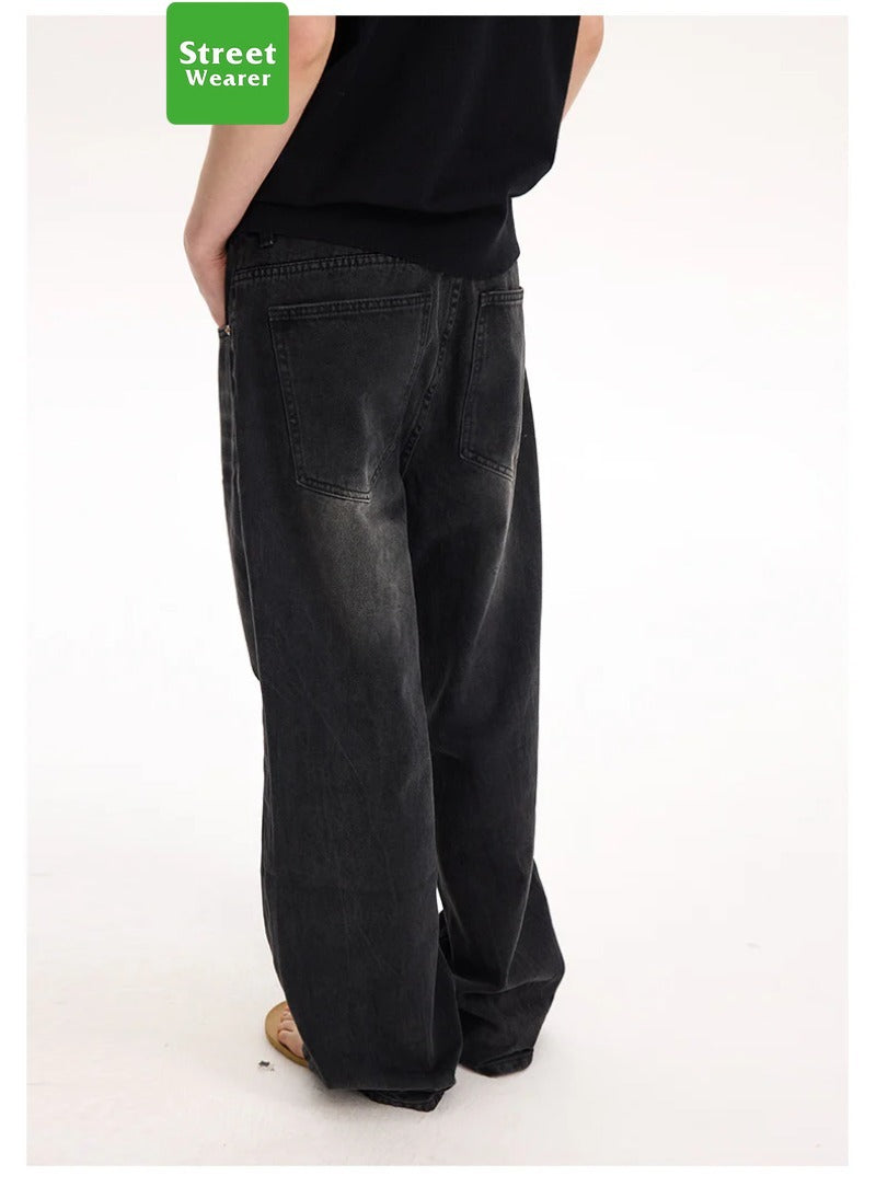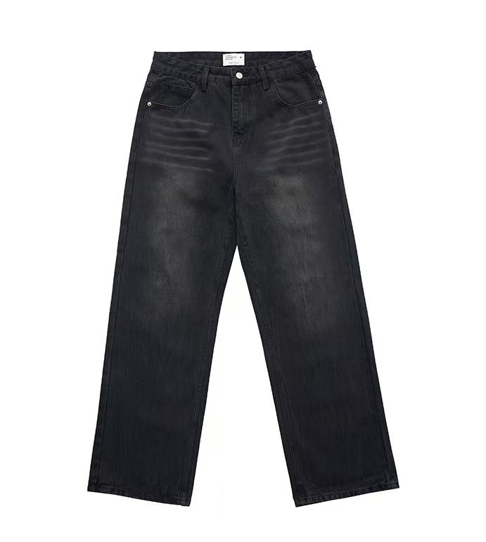 13.5OZ Heavyweight Washed Baggy Whiskered Straight Leg Jeans SW999