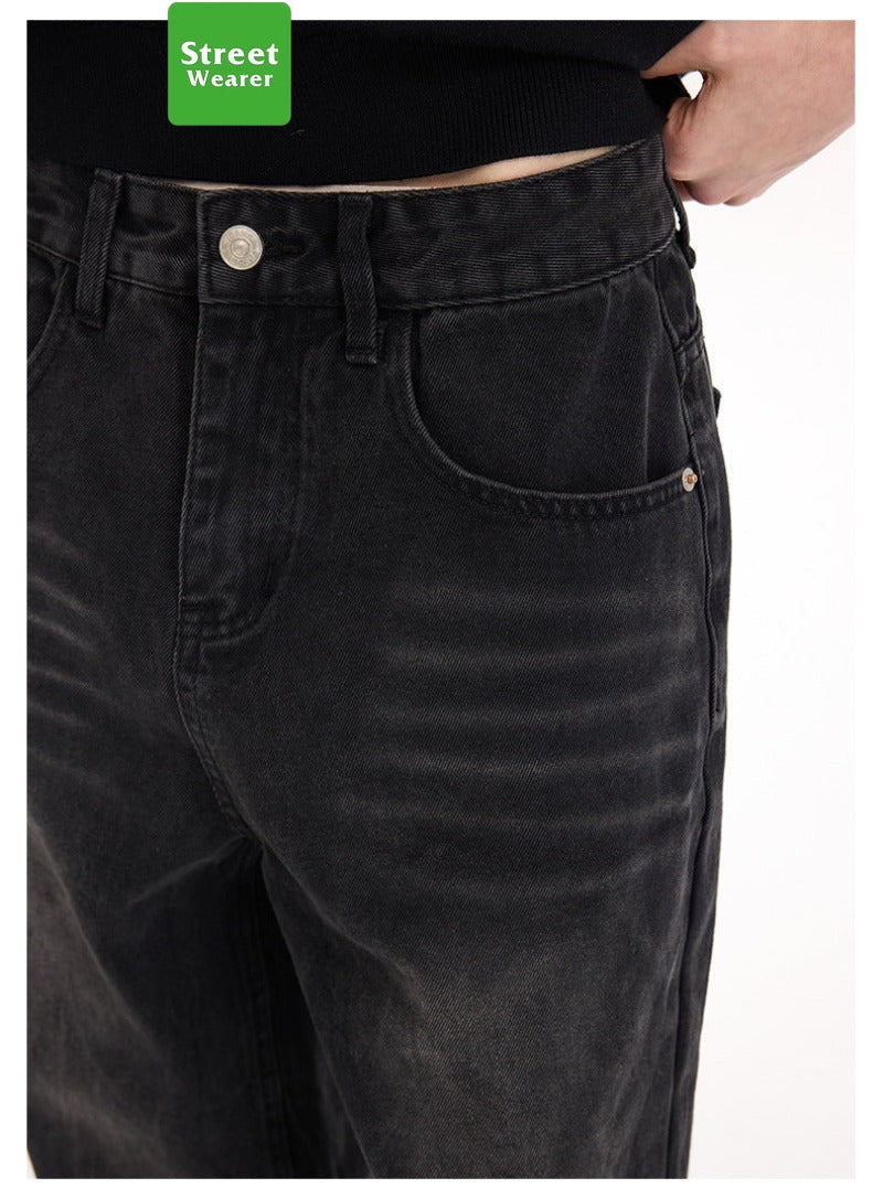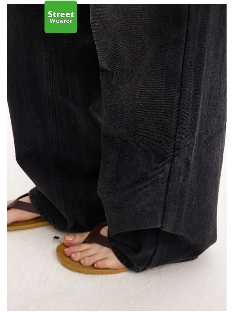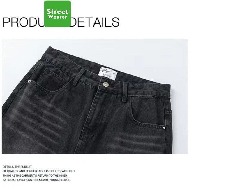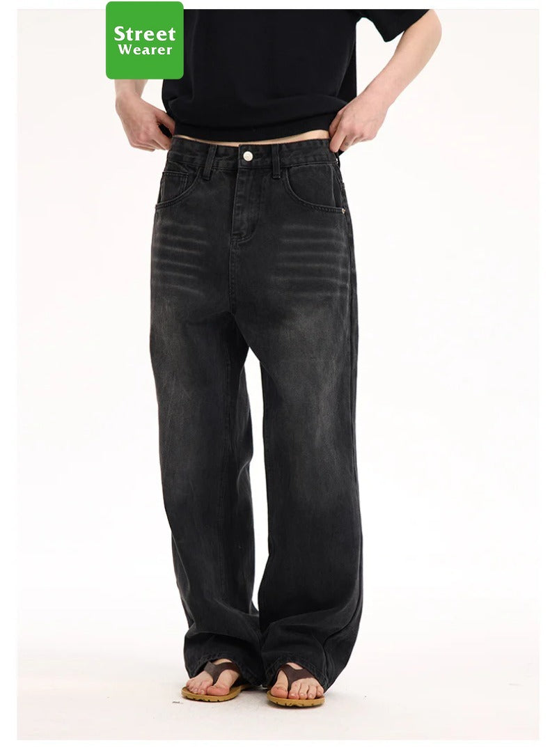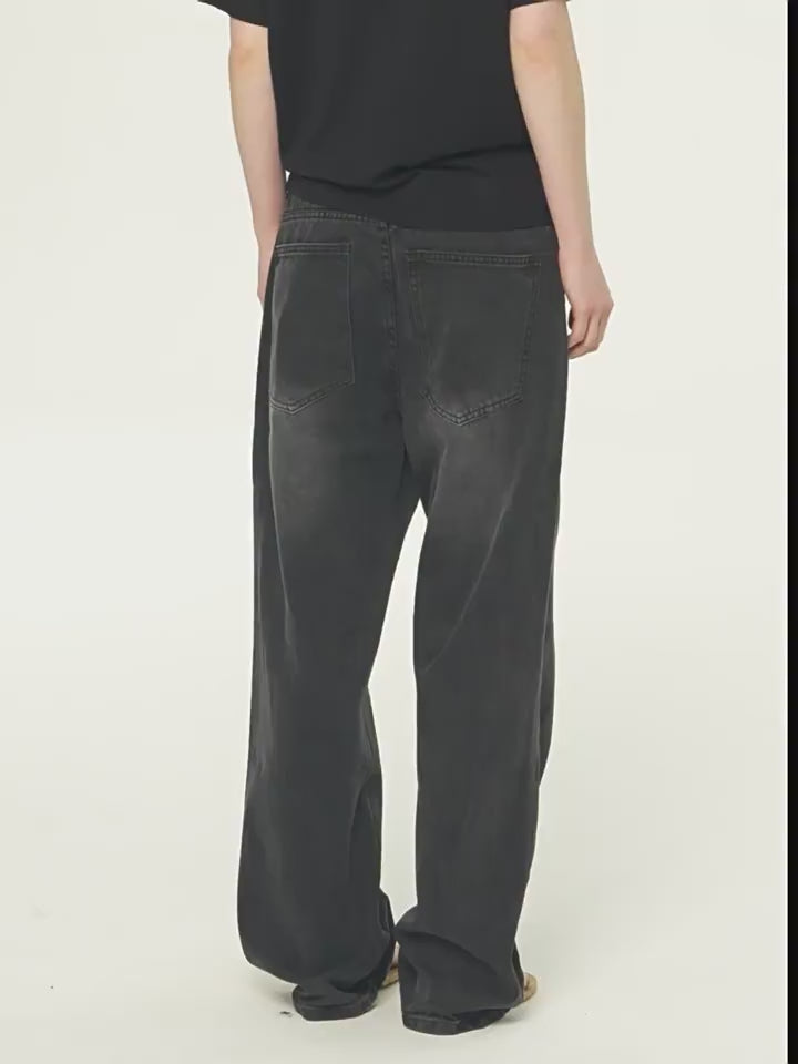 13.5OZ Heavyweight Washed Baggy Whiskered Straight Leg Jeans SW999