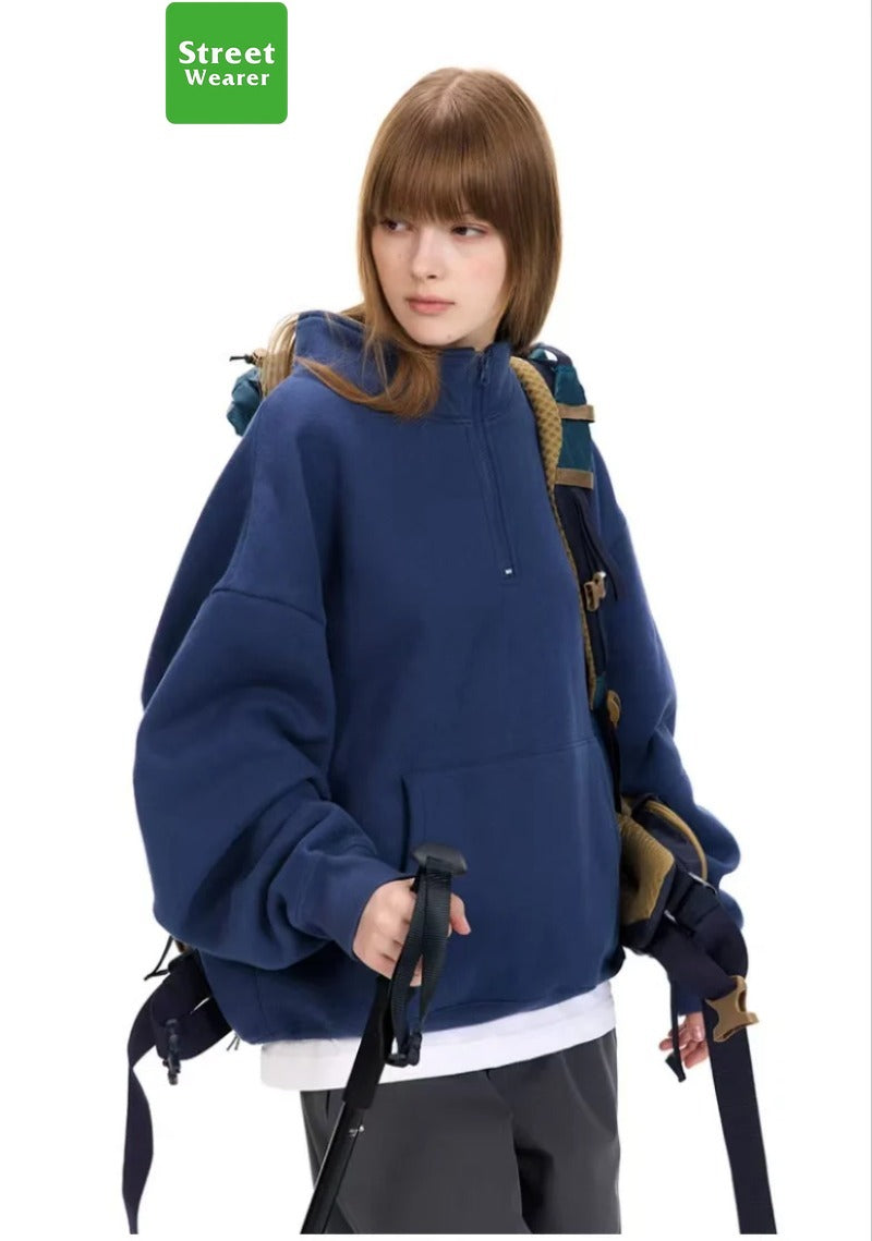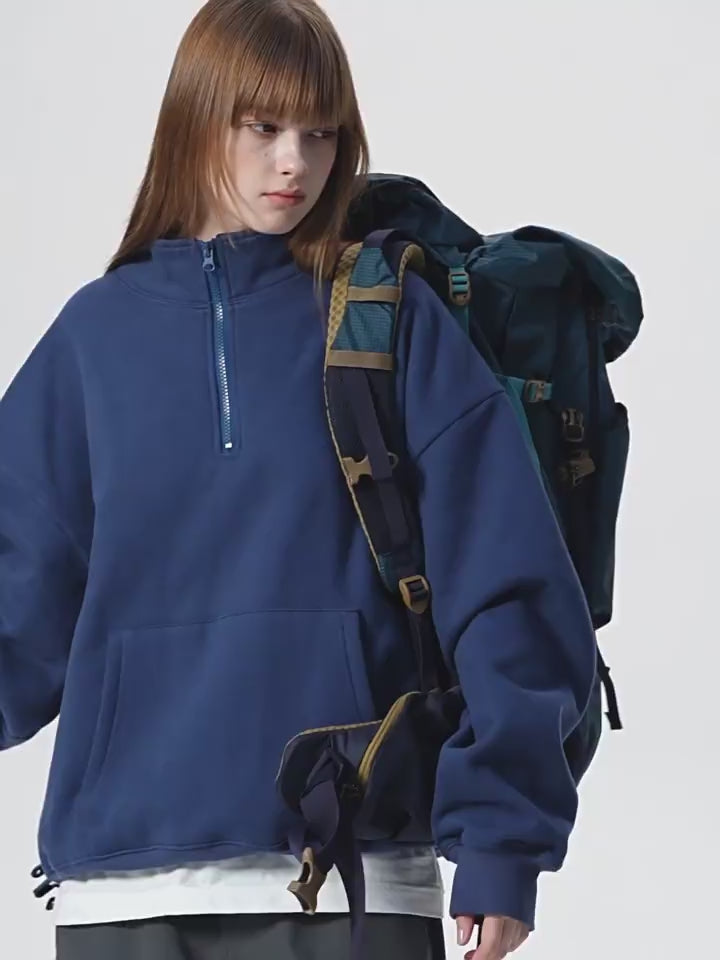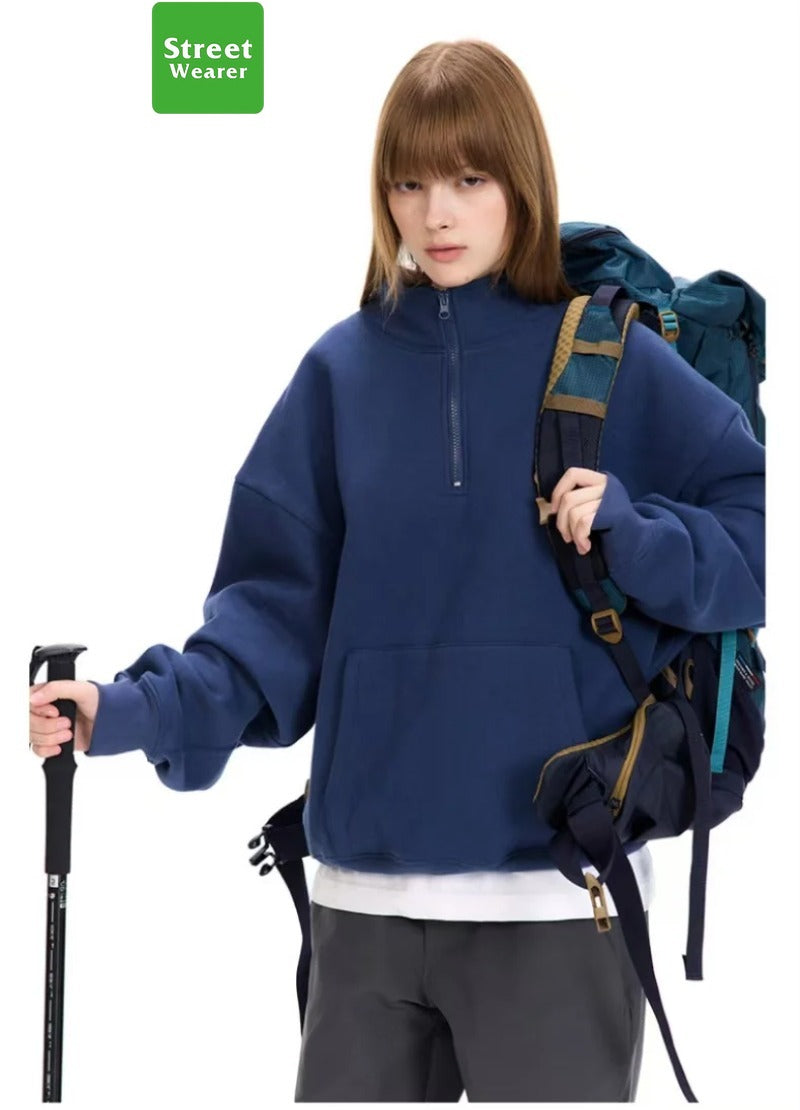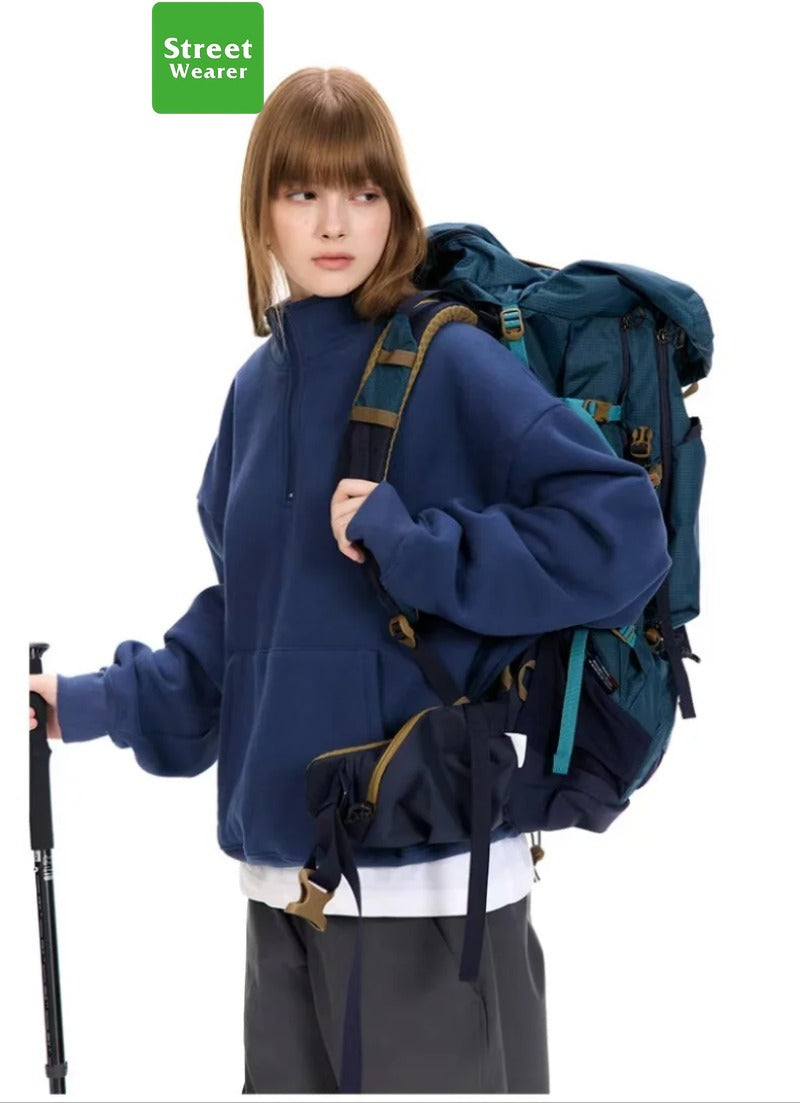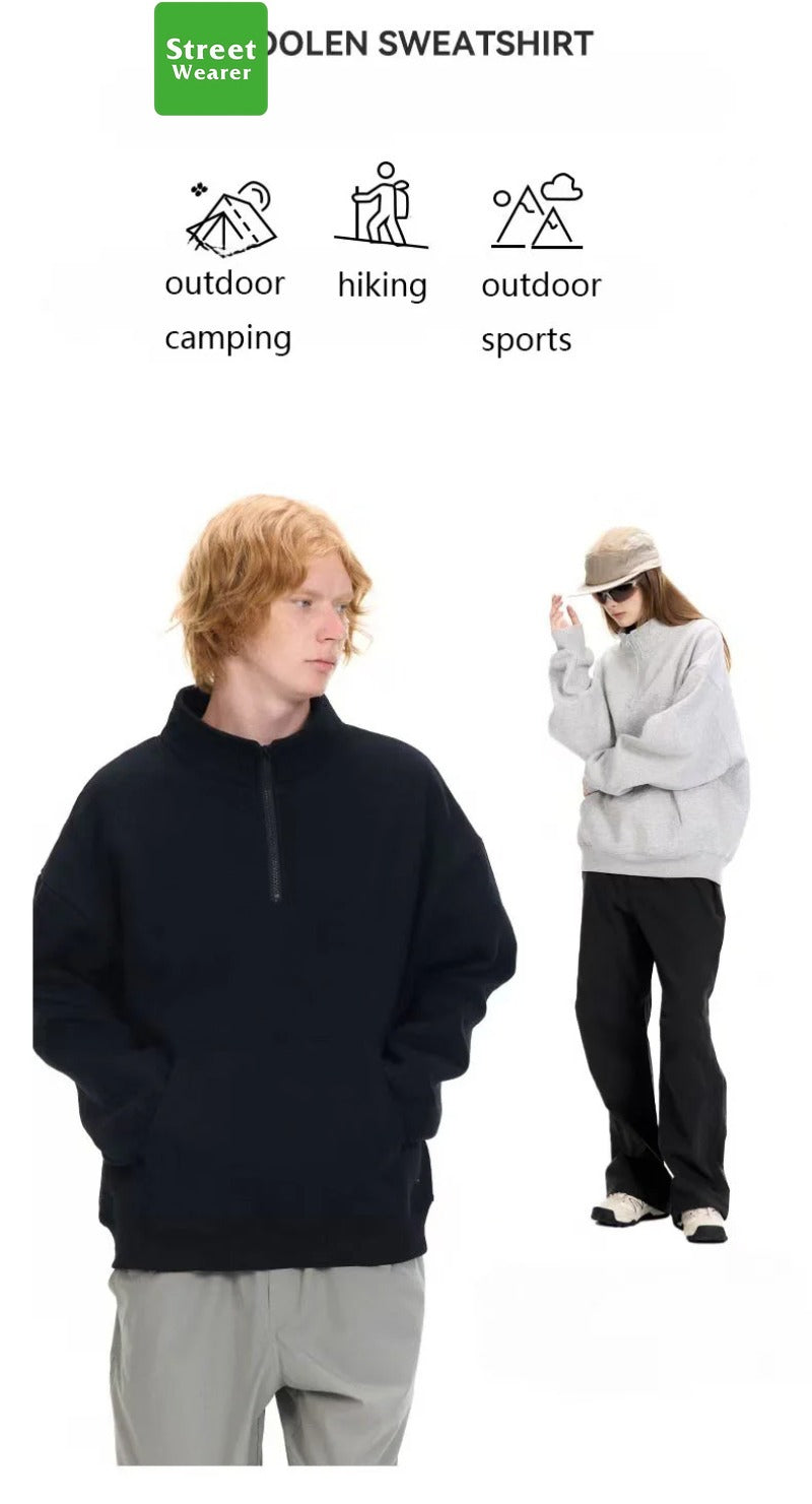 Athletic Casual Loose Half-zip Outdoor Hiking Woolen Sweatshirt SW025UNFX858