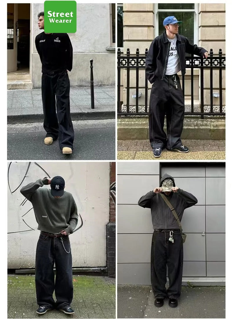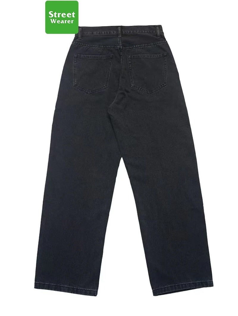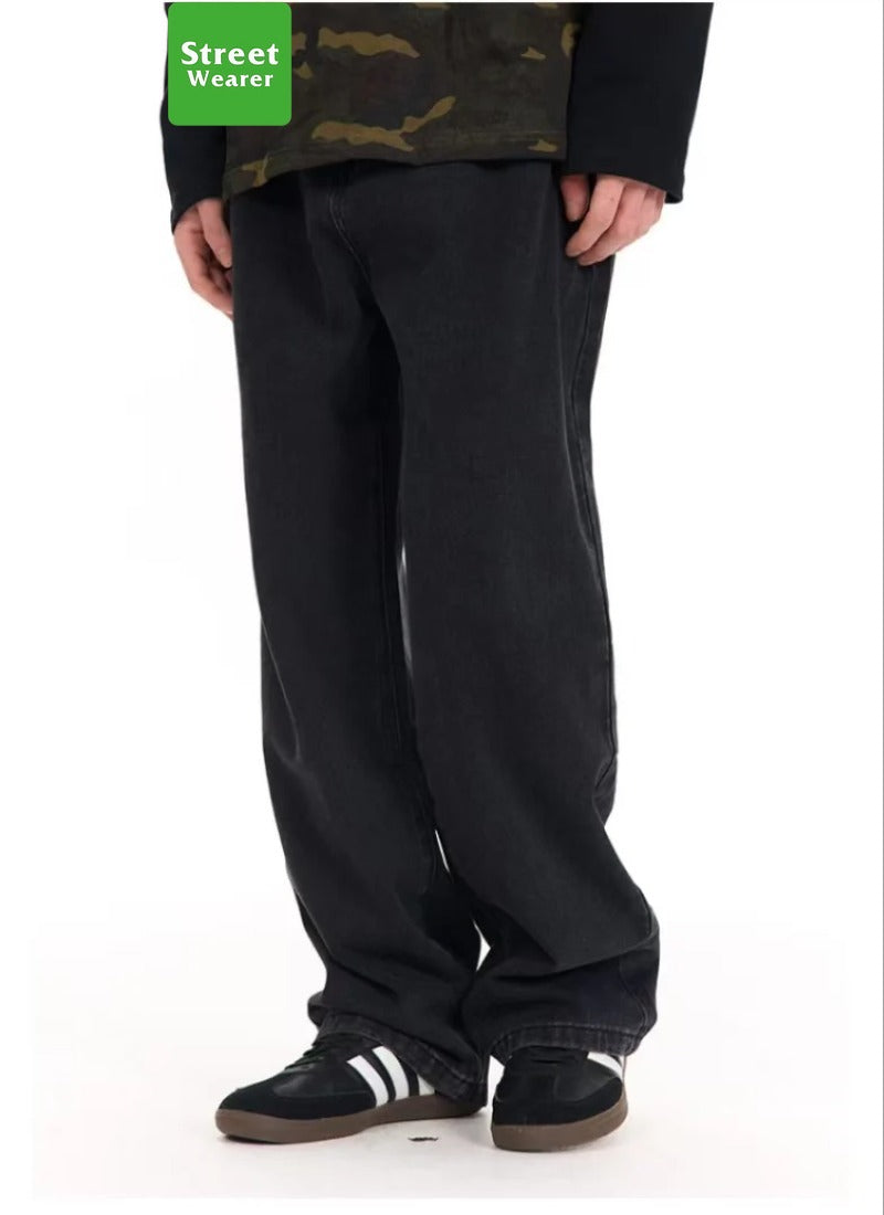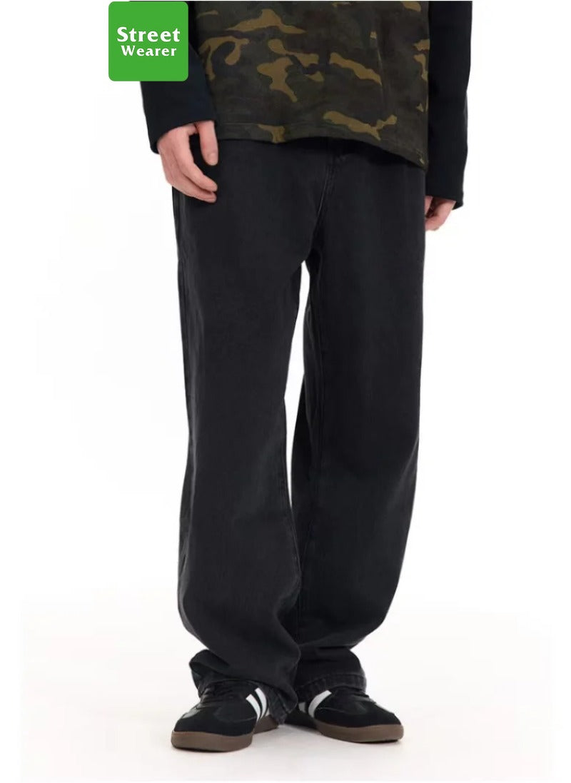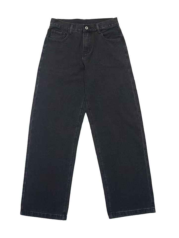 Basic Black Cow Washed and Aged Contour Straight Leg Jeans SW031UNFG998