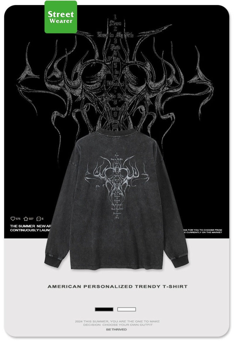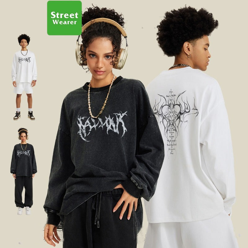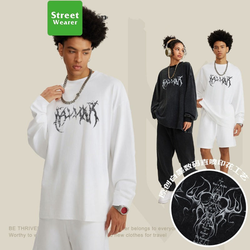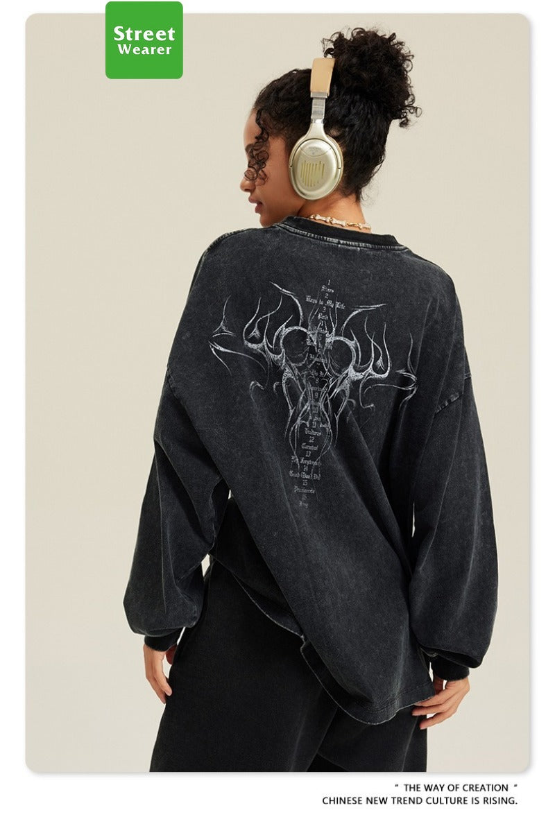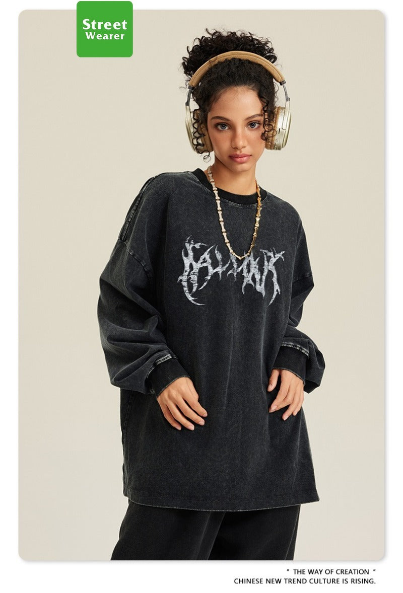 Loose Hand Painted Dirtyfit Graffiti Washed Long Sleeve T-shirt SW005BE5704