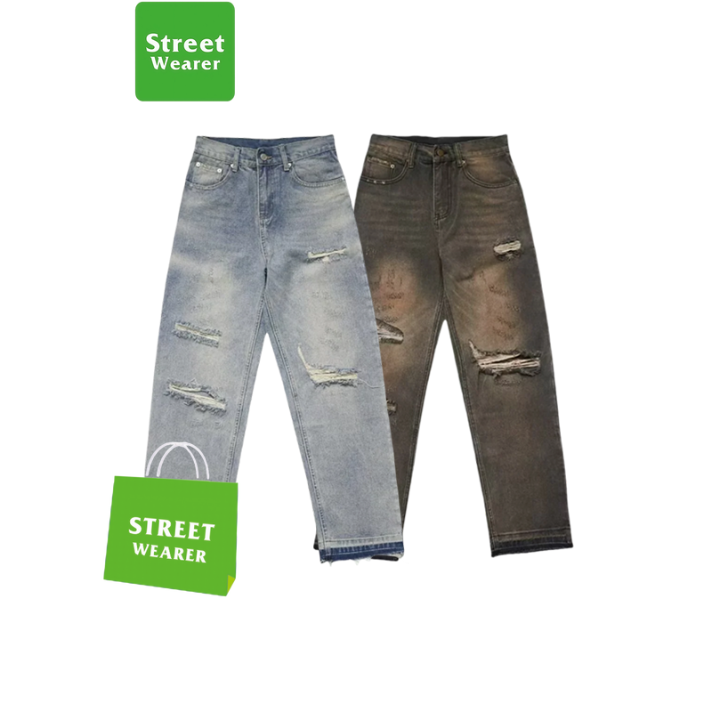 Cleanfit Basic Washed Vintage Casual Straight Ripped Jeans SW023UNFG510