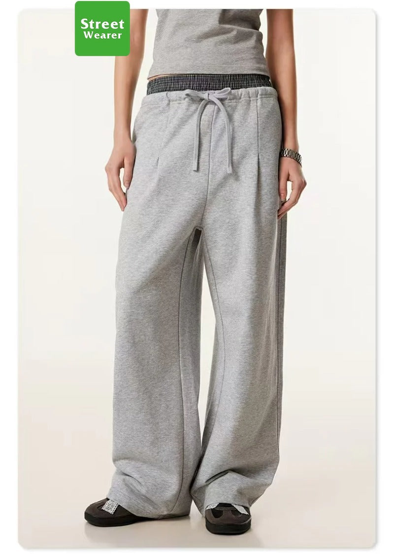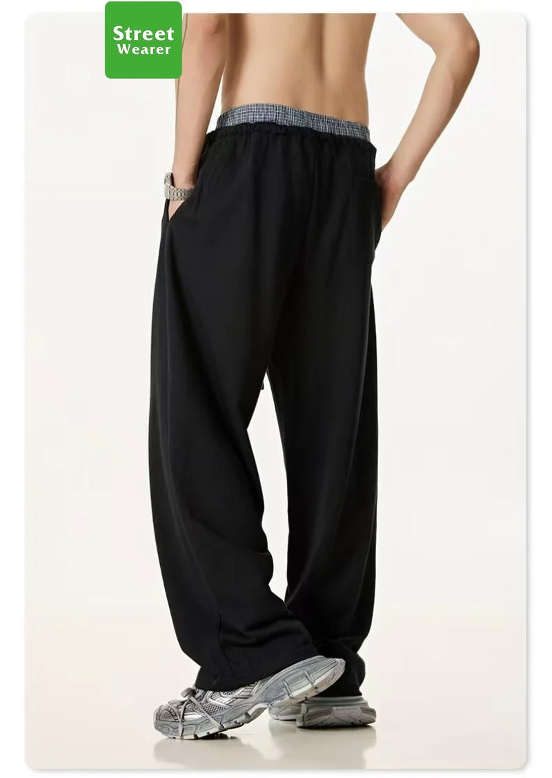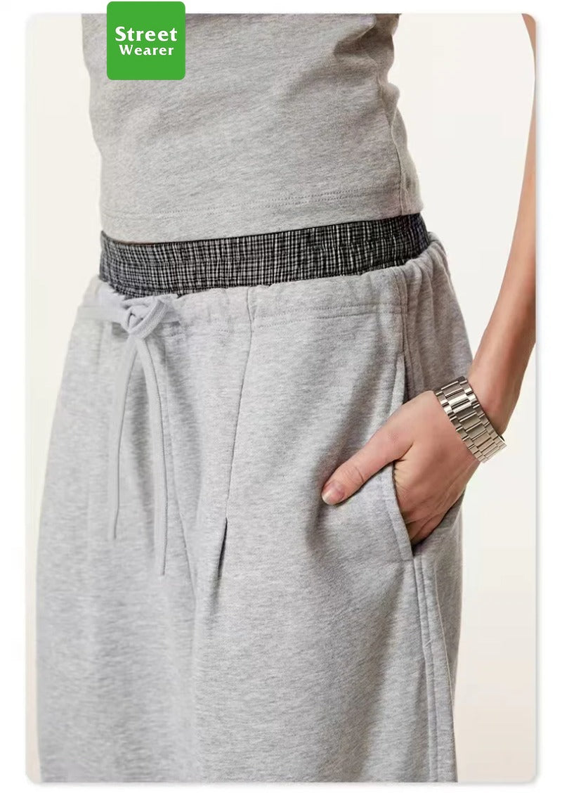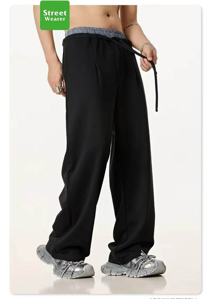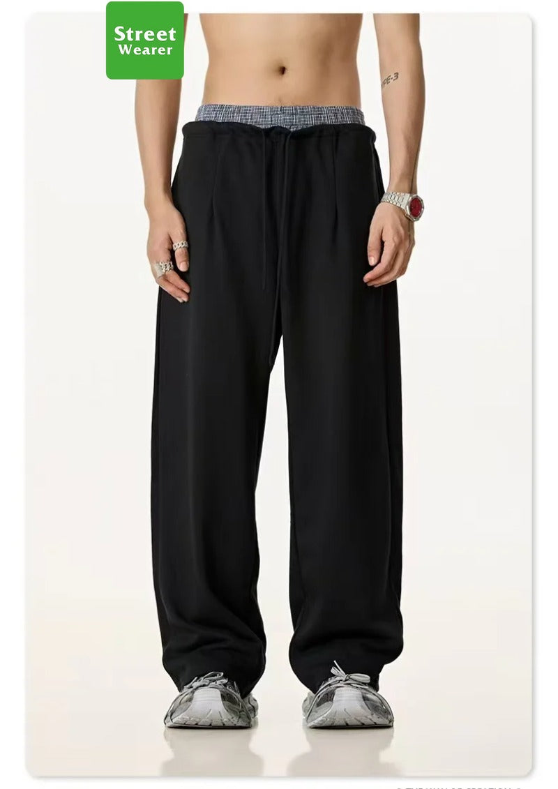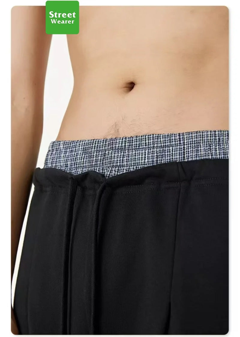 Plaid Color Contrast Double Waist Head Casual Pants K25154