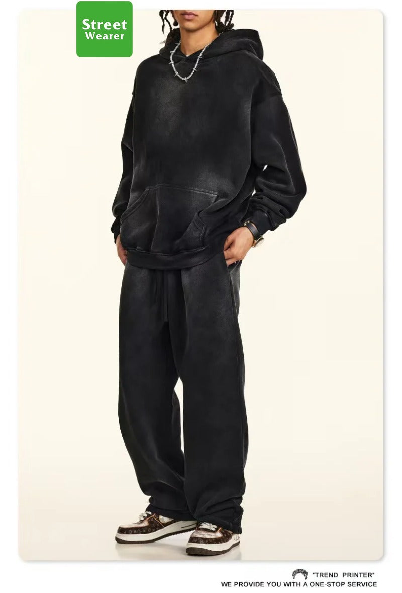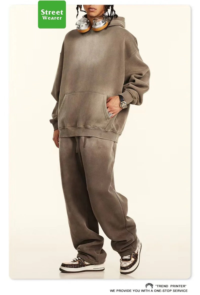 Spray monkey gradient color washed vintage hoodie set SW004BEW2423K2429