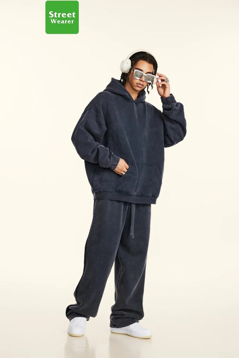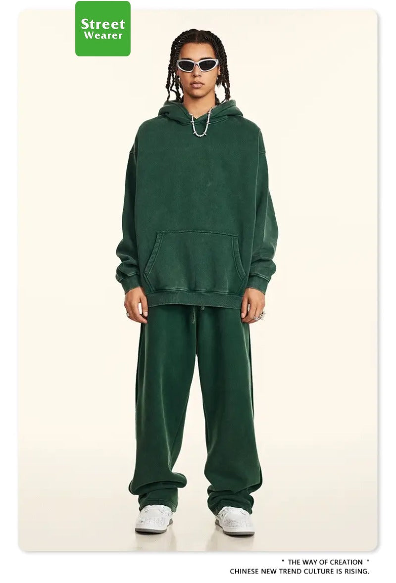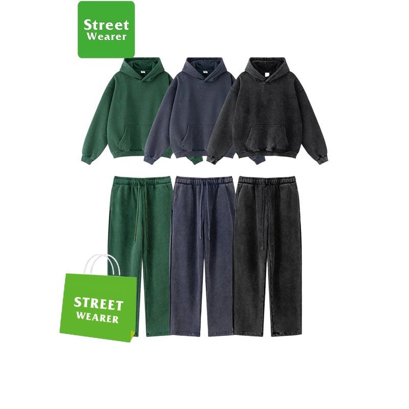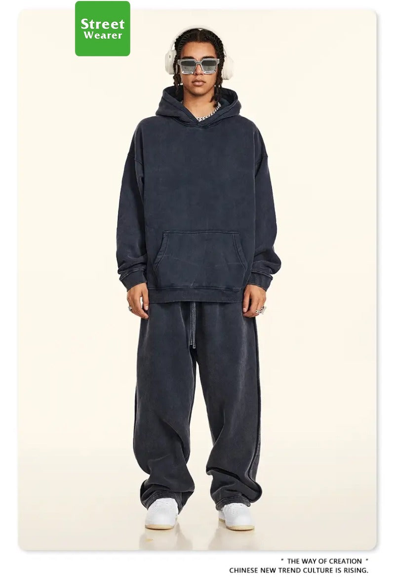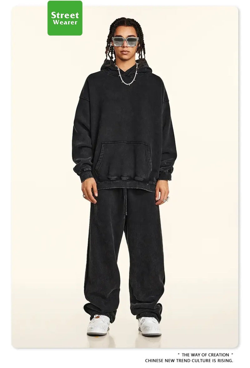 Loose fitting washed vintage hoodie set SW003BEW2485K2487